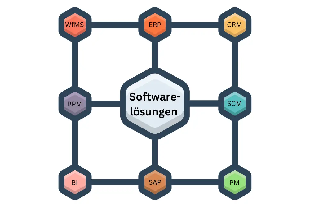 Es gibt verschiedene Arten von Softwarelösungen zur Optimierung von Geschäftsprozessen. Dazu gehören beispielsweise: